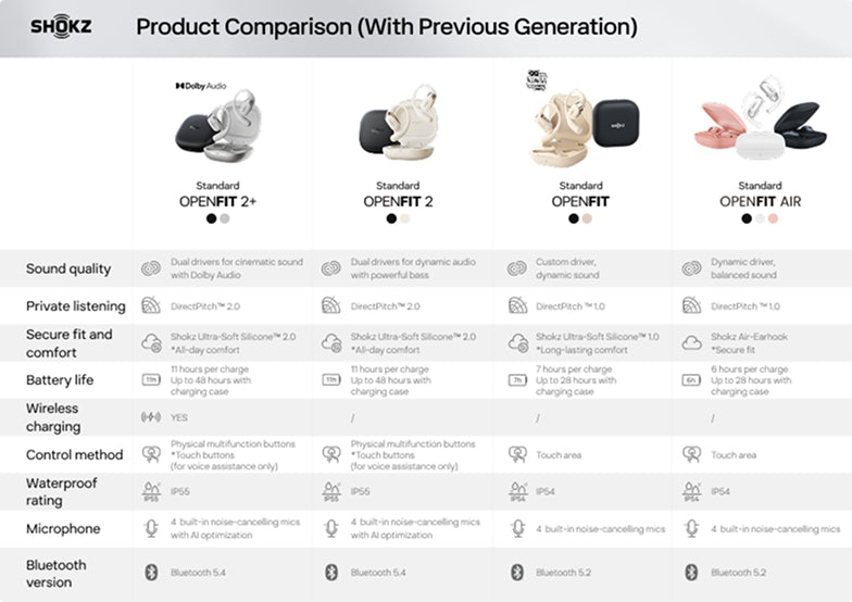 But if you want upgraded sound quality and extra convenience, then the OpenFit 2+ is the better option. Thanks to Dolby Audio, you can access a more expansive and immersive listening experience. And with wireless charging, you never have to search for an outlet or charging port again.
