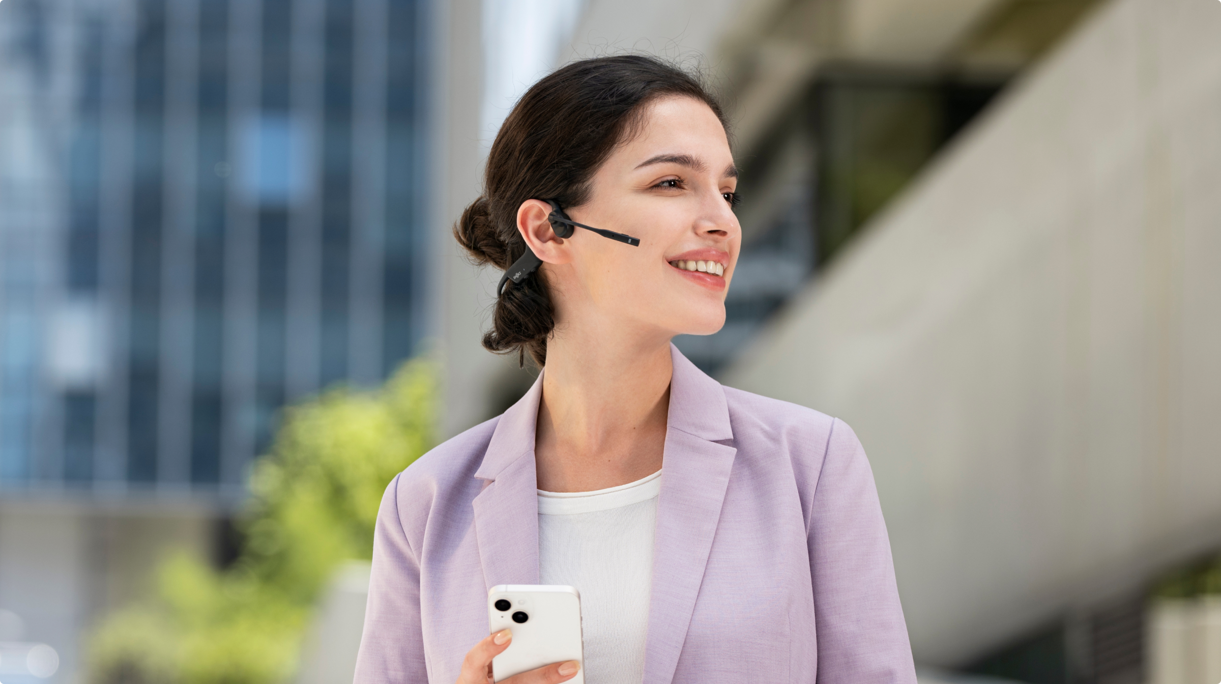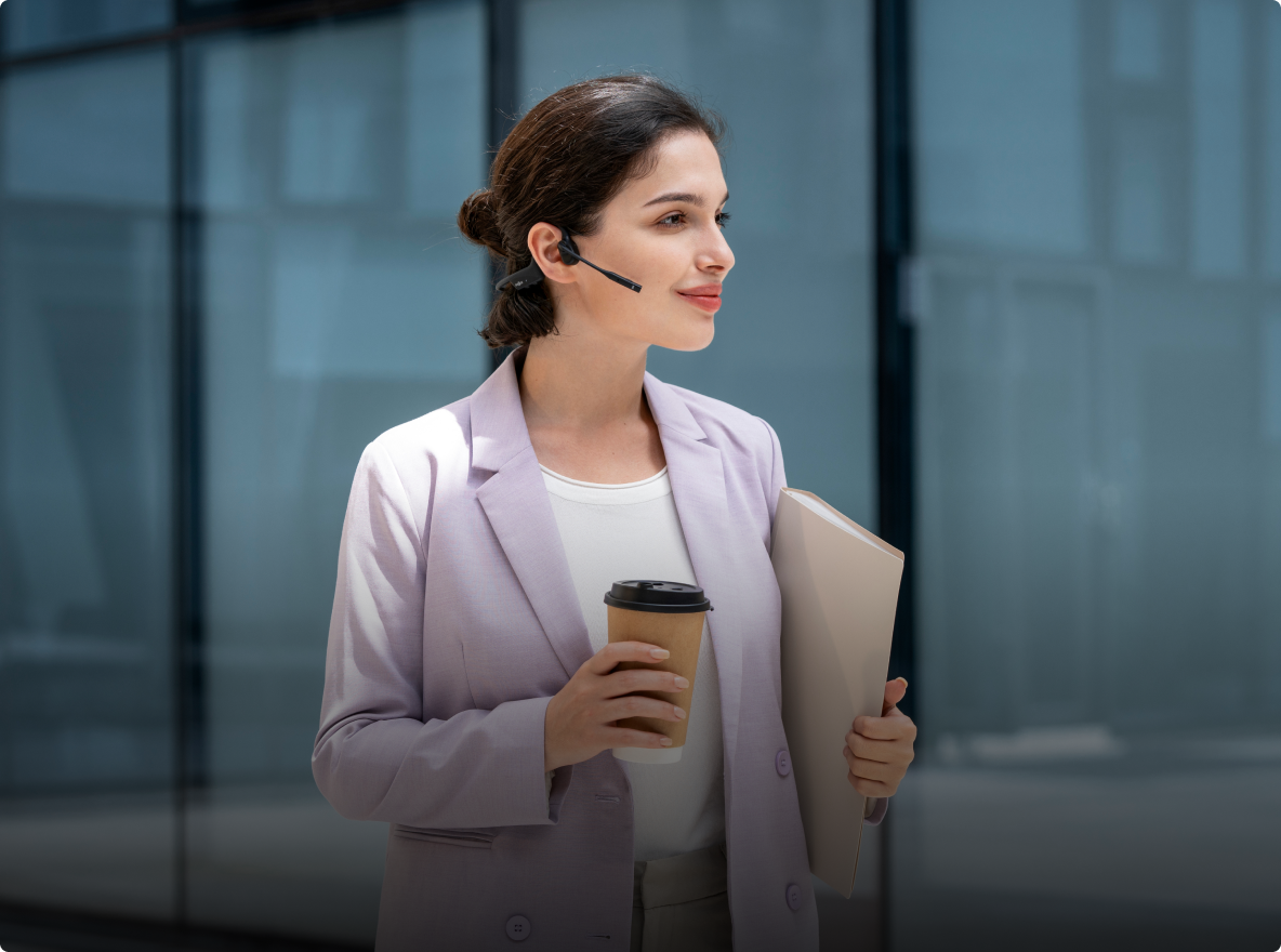 Mantente plenamente conectado mientras te desplazas con los OpenComm2. Disfruta de llamadas nítidas, conectividad estable y movilidad sin restricciones, todo ello sin descuidar la atención de tu entorno gracias a nuestro distintivo diseño open-ear.